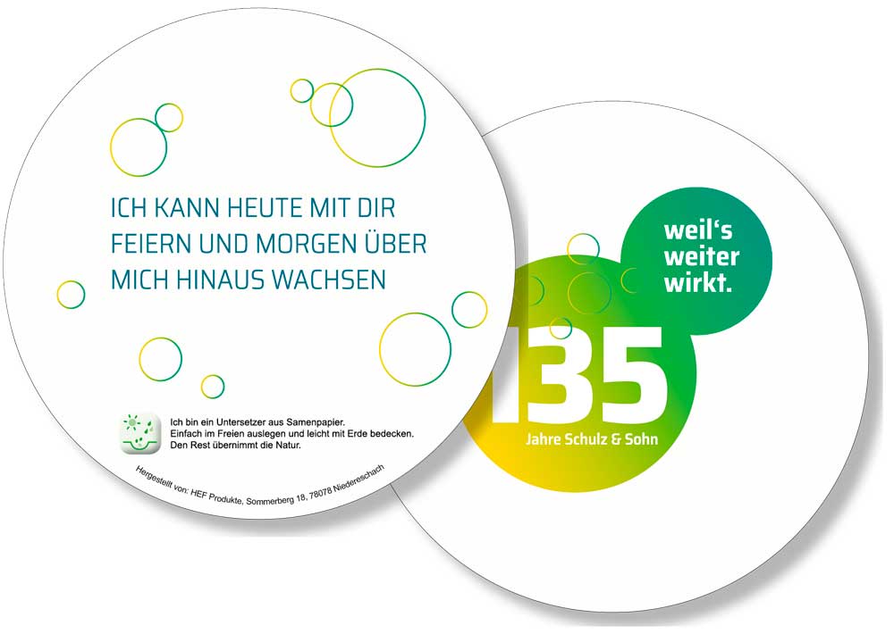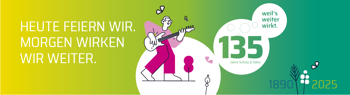 Ende 2021 fand bei Schulz & Sohn ein interner Wettbewerb unter den Abteilungen statt. Das große Banner (32,00 × 7,20 m) an der Fassade der Halle 2 sollte erneuert werden. Die Vertriebsabteilung gewann mit ihrer Idee, das Wirken von Schulz & Sohn – früher, heute, zukünftig – in einer Timeline abzubilden. Unsere Aufgabe war es, diese Unternehmensentwicklung plakativ zu gestalten.